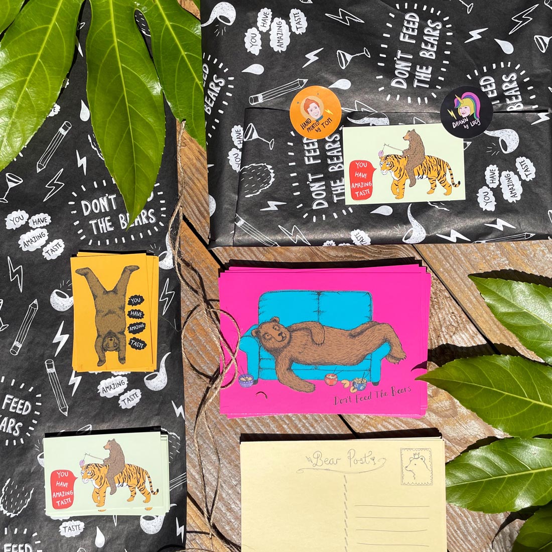 All orders are gift wrapped in super cool Don't Feed the Bears tissue paper and posted to you in a biodegradable paper mailer (it's super strong & waterproof too)