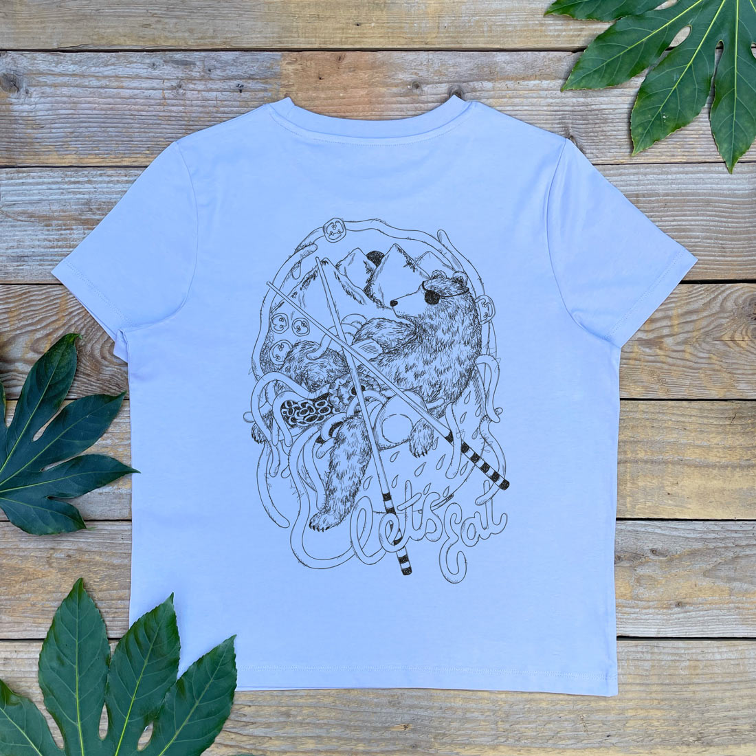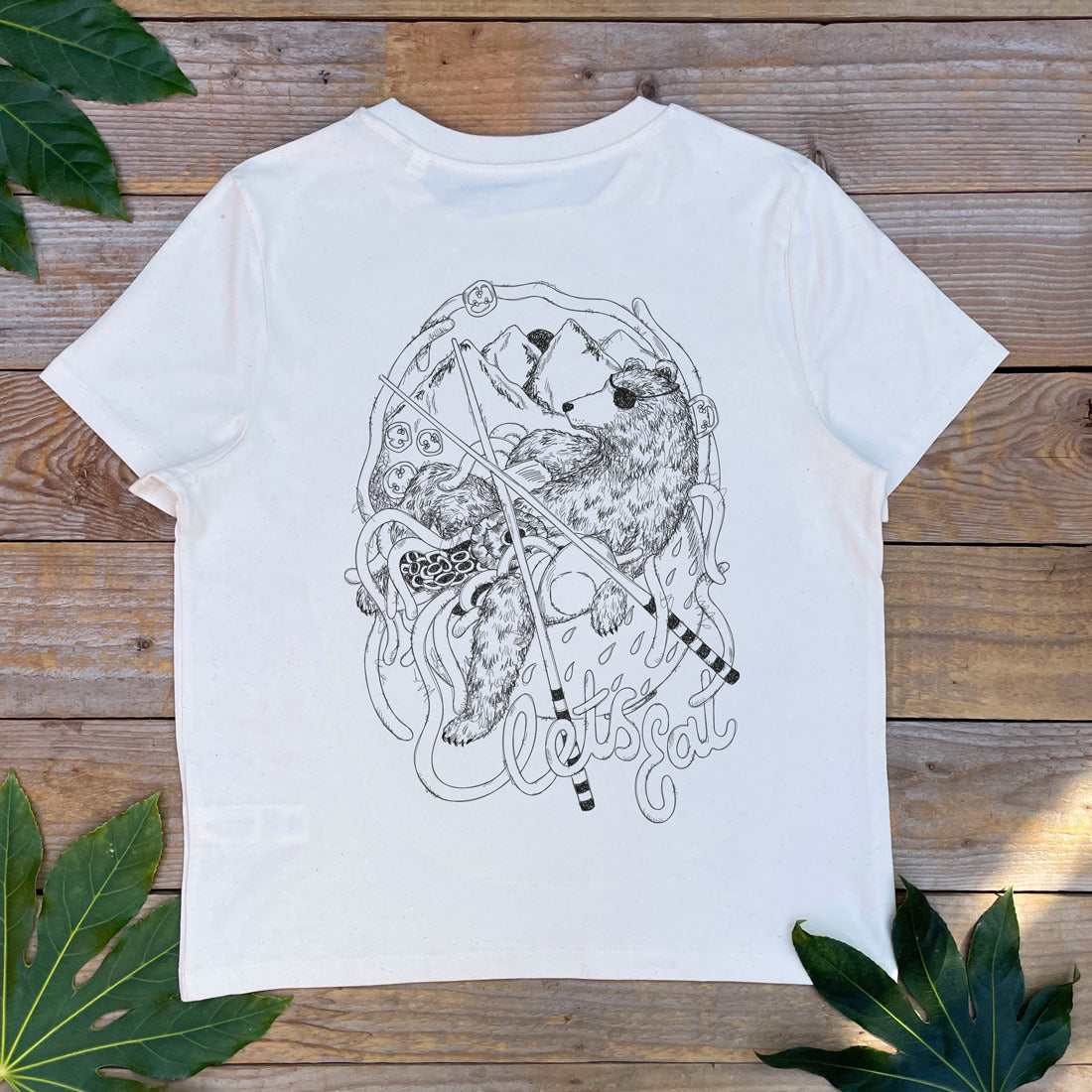 Just a bear and a bowl of noodles......Who doesn't love Ramen! This is a front and back print Tee.